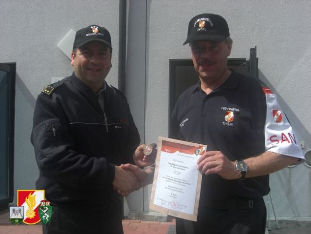 Für die FF-Thörl traten bei diesem Bewerb die Kameraden BI Ernst Wöls und LM Lukas Ebner an. Sie bildeten gemeinsam mit OBI Daniel Krenn von der FF-St. Ilgen einen Sanitätstrupp. Um das Leistungsabzeichen in Bronze zu erreichen mussten 3 Stationen erfolgreich absolviert werden. Der Trupp war dabei in jeder Station überragend und konnte den Bewerb mit einem Punktemaximum erfolgreich abschließen.