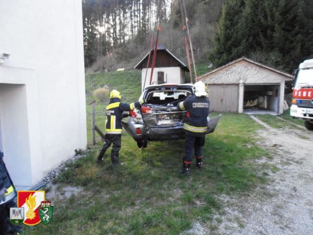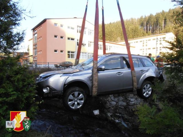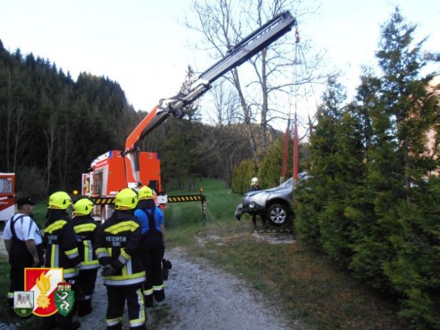 Daraufhin rückte man sofort mit dem RLF-A 2000 und 7 Kameraden zum Einsatzort aus. Nach der Erkundung der Schadenslage fand man ein Fahrzeug im vorbeiführenden Bach vor. Daraufhin entschied sich der Einsatzleiter der FF-Thörl das SRF-A der FF-Kapfenberg/Stadt zur Bergung nachzualarmieren. Mit Hilfe des Kranes wurde der beschädigte PKW aus dem Bach geborgen. Der Fahrzeuglenker zog sich bei diesem Unfall Verletzungen unbestimmten Grades zu.