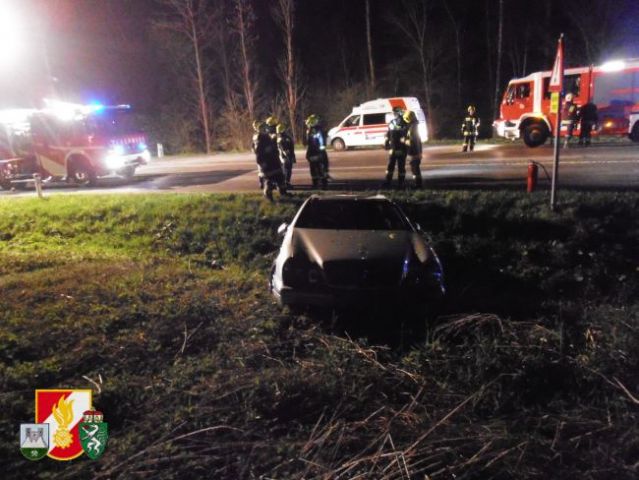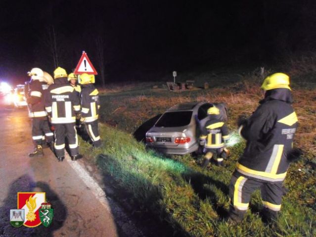 Der Einsatzbefehl lautete Verkehrsunfall mit eingeklemmter Person auf Höhe der Stegerbrücke. Die FF-Thörl rückte daraufhin mit 3 Fahrzeugen und 19 Mann zur Einsatzstelle aus. Der PKW kam aus unbekannter Ursache von der Fahrbahn ab, überschlug sich und blieb im Straßengraben zum stehen. Beim Eintreffen am Einsatzort konnte sich der Fahrzeuglenker bereits selbstständig aus dem Fahrzeug befreien.