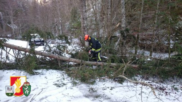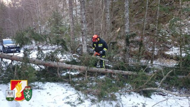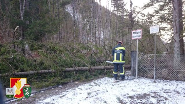 Man rückte daraufhin sofort mit dem RLF-A 2000 und 7 Mann in die Fölz aus. Der Baum wurde durch die Einsatzkräfte der Feuerwehr sowie der Seilwinde des RLF-A 2000 von der Straße entfernt. Als dieser Einsatz beendet war und man wieder ins Rüsthaus einrücken wollte, wurde man von einem Jogger über einen weiteren umgestürzten Baum in der Nähe vom Schwabenbartl informiert. Der Baum, welcher auf ein Telefonkabel fiel, wurde auch wieder von den Kameraden der FF-Thörl von der Straße entfernt und auf den Fahrbahnrand gelegt.