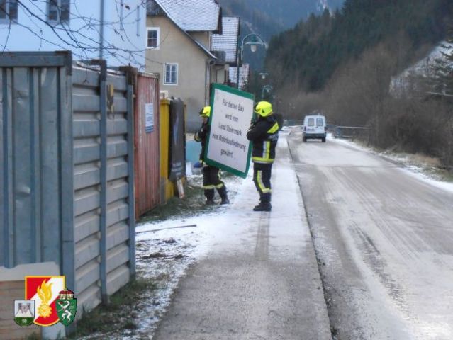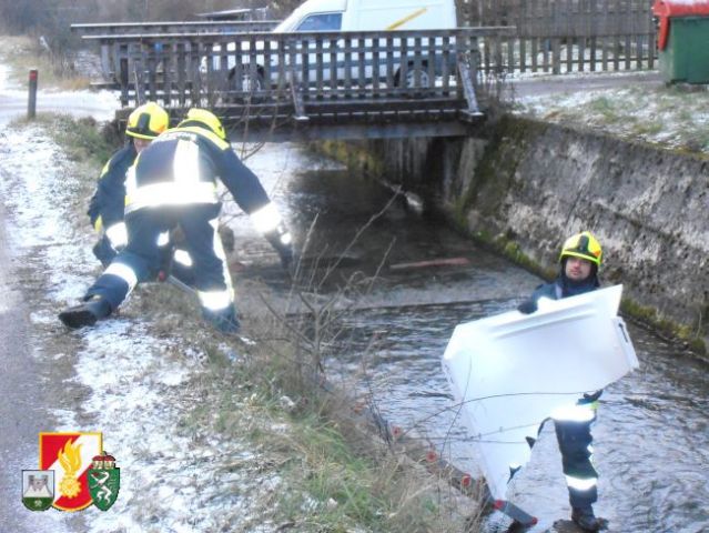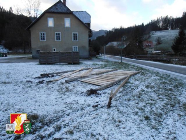 Zeitgleich rückten 7 Kameraden mit dem LFB-A in die Apfelhube aus um Baumaterialien aus dem Bach zu entfernen. Auch diese machten sich durch den starken Wind selbstständig und flogen davon. Weiters waren 3 Mann mit dem MTF-A unterwegs um Mülltonnen von der B20 zu beseitigen.