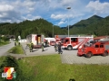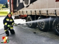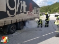 Unverzüglich rückten 16 Kameraden zur Einsatzstelle aus. Nach Erkundung durch den Einsatzleiter stellte sich heraus, dass bei einem Sattelanhänger die Bremsen so stark erhitzten, dass sich dadruch eine starke Rauchentwicklung bildete. Die Kameraden des RLF-A 2000 sowie des LFB-A begannen daraufhin sofort mit der Kühlung der Bremsanlage sowie der Reifen und des Unterbodens des Aufliegers. Der LKW-Fahrer bemerkte die Rauchentwicklung zum Glück früh genug und konnte die Zugmaschine noch vom Anhänger absatteln, so entstand am LKW kein Schaden. Durch den Wasserstrahl konnten die Bremsen und Reifen schnell gekühlt werden, somit entstand auch am, mit Holz beladenen, Auflieger zum Glück kein weiterer Schaden.