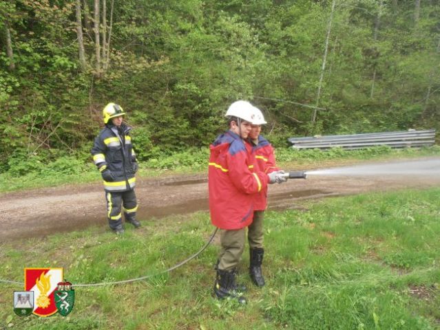 Während eine Gruppe mit dem RLF-A 2000 mit Auspumparbeiten am Sportplatz in Thörl beschäftigt war, wurde im Hinterberg die letzte Frühjahrsübung in diesem Jahr abgehalten.