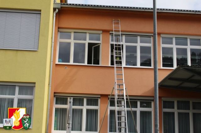 In der Volksschule wurde ein Brand in einem Klassenzimmer im ersten Obergeschoß angenommen. Bis auf drei Schüler konnten alle Kinder bereits vom Lehrpersonal in Sicherheit gebracht werden. Die drei vermissten Schüler wurden durch den Atemschutztrupp der Feuerwehr Thörl sowie durch die Kameraden der Feuerwehr St. Ilgen, welche einen Rettungsweg mittels Leiter herstellten, gerettet werden.